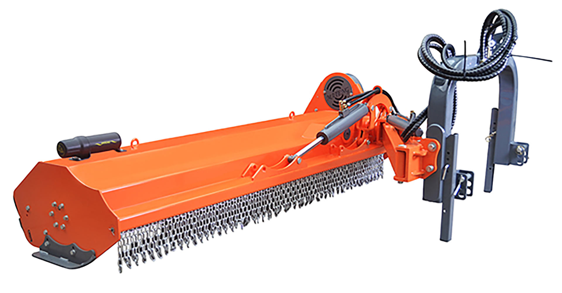 Bočni mulčer na hidravlični roki, primeren za mulčanje trave, goste vegetacije in grmovja premera od 6-7 cm. Hidravličen stranski pomik, kot obračanja od -60°do +90°, hidravlični cilinder za pozicioniranje glave s plavajočo povezavo, nastavljiva višina košnje trave od 2 cm do 4 cm in 6 cm, samočistilni izravnalni valj, kardanska gred, kovani in kaljeni kladivni noži Mateng. Dodatna oprema: noži v obliki Y, model OS ima lahko zunanji reduktor.