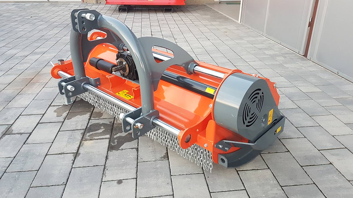 Kompakten mulčer za vinograde in sadovnjake, nameščen na zadnjem delu traktorja, primeren za mulčanje trave, goste vegetacije in grmovja premera od 4-5 cm. Standardna oprema: 3-točkovni priklop, kategorija I ali II, stranske sani, nastavljiva višina kosilnice od 2 cm do 4 cm in 6 cm, mehanski stranski pomik (3 načini nastavitve), samočistilni izravnalni valj, kardanska gred, kovani in kaljeni rezili Mateng. Dodatna oprema: hidravlični bočni pomik s cevmi in hitrimi spojkami (modeli z oznako H); hidravlično dvigovanje zadnjega pokrova, rezila v obliki črke Y.