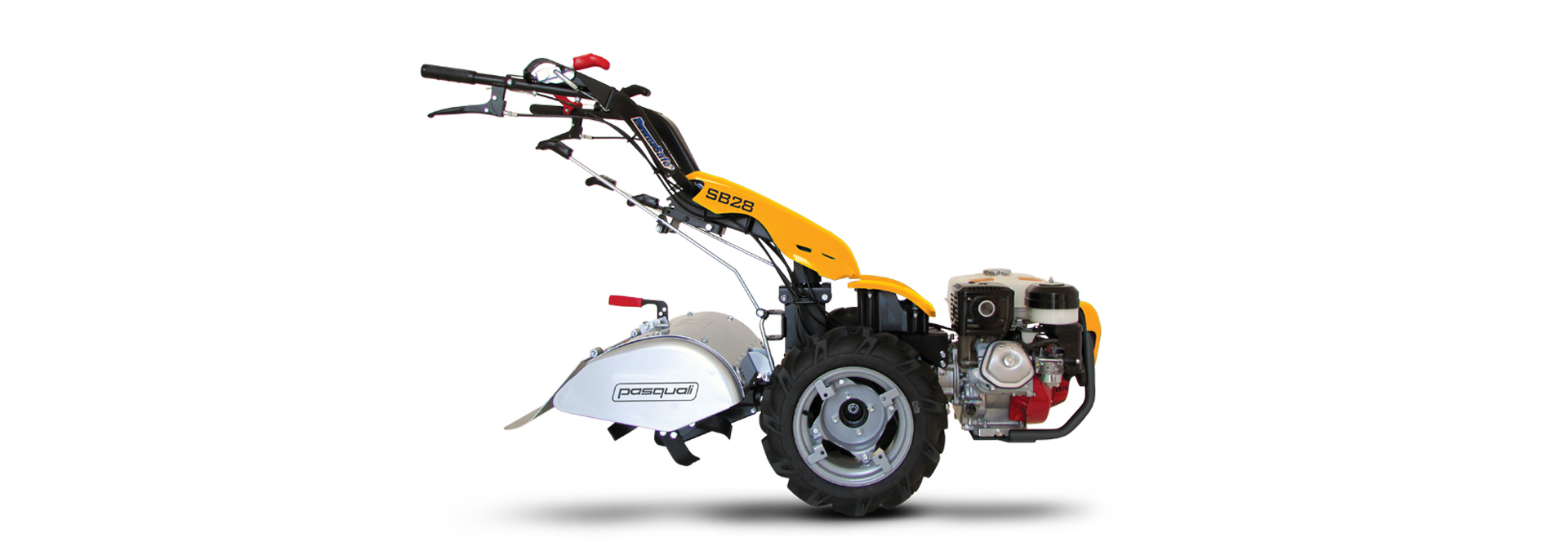 Moto kultivator SB 28 PS je majhen in kompakten moto kultivator, namenjen za enostavna opravila na vrtu in na površinah, kjer ste omejeni s prostorom. Krmilne ročice so nastavljive po višini, ter levo in desno, obenem pa so tudi reverzibilne, kar omogoča uporabo priključkov za spredaj in zadaj. Na voljo so različni priključki, zato ga lahko uporabljamo za dela na vrtovih, zelenicah in dvorišču. Moto kultivator ima vgrajen bencinski motor treh railičnih moči, HONDA GP160 z močjo 4,8 KM, HONDA GX200 z močjo 5,5 KM in HONDA GX270 z močjo 8,6 KM, ki je na voljo tudi v ALPS izvedbi, prilagojen za delo na strmih pobočjih. Hidravlična sklopka PowerSafe® v oljni kopeli, patentirana s strani BCS Group, zagotavlja: maksimalno zanesljivost, večje udobje pri uporabi, varnost in visoko zmogljivost na vseh področjih delovanja. Na stroju so kolesa dimenzij 4.00-8 ali 4.00-10.