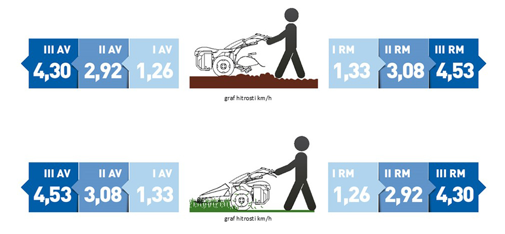 Kosilnica z enojnim rezilom 56 cm ali dvojnim rezilom 100 cm.