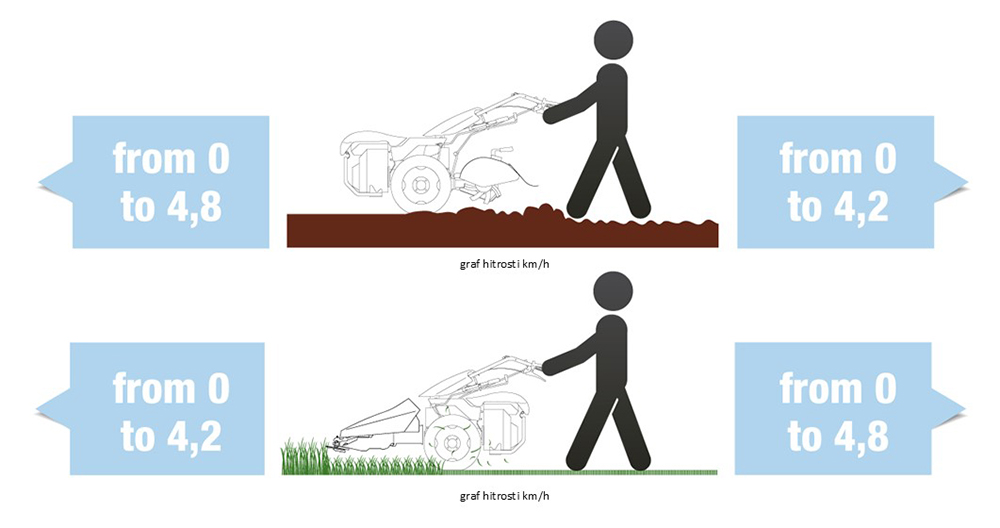 Kosilnica z enojnim rezilom 56 cm ali dvojnim rezilom 100 cm.